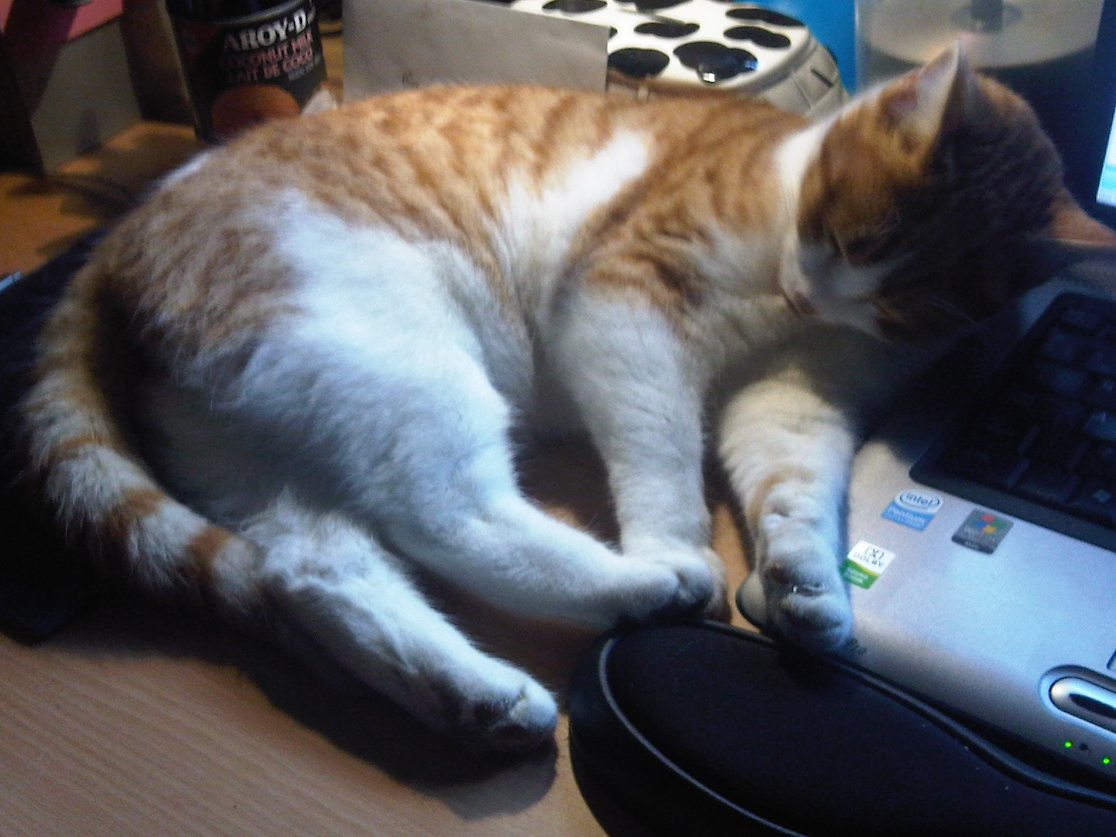 The cats ..(especially for my aunt Judy!) are doing well.. Rusty is currently sat on my lap, leaking an odious smell one end and a purr the other.. Gilbert is also doing well.. he has had a bad eye all year from div